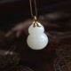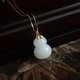 18k金鑲嵌天然和田玉葫蘆吊墜,羊脂玉,一級白,脂份好,結構很細,精工立體雕刻,油潤脂份足,18K厚金版鑲嵌,送銀鏈。