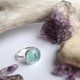 淡いエメラルドグリーンの中に浮かび上がるタコの姿がかわいいシルバーリングです。