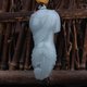 作品玉質細膩,呈鴨蛋青色,凝脂潤澤,威嚴富貴之韻。線條流暢,刀法圓融,構思巧妙,雖無具象頭部刻畫,但亦可顯神態悠閒雍容、落落大方,充滿了靈動的輕盈感,身姿如游龍驚鳳,搖曳生姿。作品定格了敦煌的某一瞬間,凝視著它,我們彷彿穿越了久遠的歷史長河,重現昔日永恆的樂章。