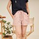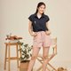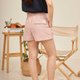 尼龍高腰短褲 ,剪裁設計搭配兩邊側口袋呈現輕鬆休閒風格,營造苗條視覺感。褲頭鬆緊帶設計,伸縮空間。
