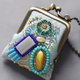 キルト芯を貼った表地に、糸とビーズで細かな刺繍を施しました。 ひとつひとつ丁寧に手仕事で仕上げた一点物です。