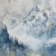 《雲海初雪》以冷色調油彩層層堆疊,描繪山峰初降薄雪時的光影流動。筆觸中帶有霧氣般的透明感,使前景的松林輪廓與遠方的雪山交織出深度層次,呈現靜謐且沉穩的視覺焦點。