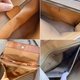 手袋狀態一般,主要是皮邊位有裂痕,角位原本有擦白,店主補過色,原裝肩帶有乾紋發老化,但可正常使用,亦附送新的真皮肩帶方便日後替換。打開手袋的左右兩邊皮革有裂痕。內部有輕微污漬,乾爽沒有異味。