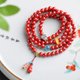 我們堅持傳統工藝打磨,拒絕上膠上色上蠟,大部分商家採用機器打磨,珠子做膠處理,這種珠子越戴越難看,破壞了硃砂的天然靈性,甚至對人體有害,我們不惜人工成本,用砂紙一遍一遍重復打磨,直到珠子呈現出天然的油光亮澤。