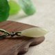 兩面皆可佩戴,無正反之分的純天然和田玉淡晴水偏白玉蘭花彫刻件製作的項鏈。線條簡約流暢,色澤清淺均勻、恬淡清雅,手感冰涼潤澤。玉蘭寓意高潔,純潔與天真,表達愛情的忠貞,友情的真摯,也有知恩圖報與吉祥如意的意思。