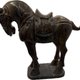 馬背完整雕出鞍具與垂帶細節,幾何刻紋清晰,具有典型唐代胡馬文化特徵,反映絲綢之路交流背景下,西域良馬在中原社會中的尊貴地位。玉質溫潤厚實,色澤呈褐黃至深褐自然變化,表面可見長期歲月所形成之包漿與老沁,非新工可比。