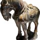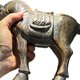 此件為唐代風格和田玉胡馬雕件,整料雕琢而成,體量碩大,重量達 3277 克,屬同類玉馬中極為少見之規格。整體造型呈立馬低首之姿,馬頸前傾、四肢穩健,線條渾厚內斂,展現盛唐時期對馬匹「內斂力量與威儀氣度」的審美特徵。