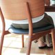 一般的餐桌高度約莫在70CM左右,同樣系列的餐桌則是62CM,相較起來稍低。但將高度降低的話,即便是大餐桌也不會感受到壓迫感,客廳也感覺變得更寬廣。跟餐桌一起合售的椅子也做得稍微低一些。一般的餐桌椅的高度約在45CM左右,但這張只有37CM,且背部也稍低,是可以舒適地享用美食的設計。坐下時臀部穩妥地和椅子融為一體,十分舒適。