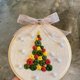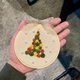 用玫瑰花組成的聖誕樹刺繡,加上蝴蝶結和白色珠珠的點綴,是一個很有質感的佳節飾品。