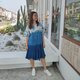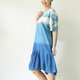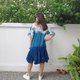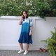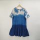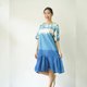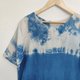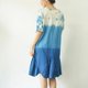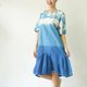圓領短袖 3 色渾濁靛藍紮染連衣裙。冷靛藍紮染從頂部到渾濁,中間是淺靛藍,下擺是深靛藍。漂亮又酷的設計連衣裙。棉質面料柔軟舒適,適合日常穿著。