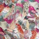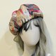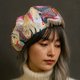以多色禽鳥紋樣的織錦緞製作,《羽之繆思》呈現清晰的羽片層次,布面在光線下有細緻的亮度變化。織面厚度適中,具有穩定的立體感,能保持帽身輪廓不塌陷。版型柔軟,戴起來能順著頭型延展,讓臉部線條看起來更乾淨。