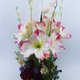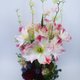 作品特色:選用進口高階擬真花材,較不易沾染灰塵,以特級擬真花材手工製作而成的植栽花飾,附加擴香試管,環境美化同時帶有芬芳的香氣。