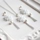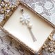 在幾乎與白色無異、極致淡雅的淺藍色花朵上,點綴了一顆棉珍珠與絨球。