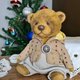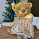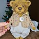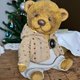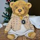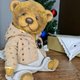他由德國粘膠纖維製成,並用鋸末填充用於加重添加的金屬顆粒。 頭部和腿部是可移動的(使用圓盤和開口銷)。 玻璃眼睛,手工鼻子。 這隻熊穿著棉質連帽夾克和褲子。 衣服是可拆卸的。