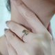 稀有藍綠色,由於含銅所以呈現藍色色澤( 碧璽之王帕拉依巴就是有含銅) 晶體透徹,搭配玫瑰金戒台,突顯其主石特殊顏色,適合任何場合配戴。