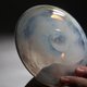 新竹師傅以無模具吹製而成,白色玻璃形成薄霧般的紋樣,細看可發現添加灰、綠、粉紅三種色調的玻璃,平面的盤子適合承裝切片蛋糕。