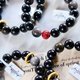 高品黑曜石/銀曜石: 珠體圓潤飽滿,在光線下隱約透出金屬光澤。黑色的能量深沈穩重,有助於吸收負能量,排除濁氣,不僅是辟邪的護身符,更是招財聚氣的寶石。