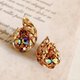 - vintage jewelry LISNER 繽紛砂金網格萊茵 夾式耳環 880元