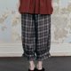 松緊腰亞麻寬松花邊燈籠褲九分休閒褲