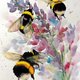 Watercolor original 3 bumblebee room decor bee painting by Anne Gorywine - 壁貼/牆壁裝飾 - 紙 多色
