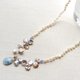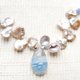 モーヴピンクのケシパールを配し、華やかで個性的なネックレスになっています