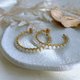 設計靈感源自古希臘的古典美學,設計師將一顆顆純淨的月光石珠,精巧地鑲嵌在閃耀的鍍金圓環上;手工的溫度讓每一顆珠子都透出獨特的乳白微光。月光石本身的光暈,猶如皎潔的月亮輕聲低語,散發出女神赫拉般的典雅與智慧。