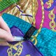 - Vintage Celine Square Silk Scarf Handbags with Chain Straps Gold Coins, and Tassels Patterns Stole Neck Wraps Head Scarf Muffler Foulards. Made in Italy. Vintage rank A very good condition. Size: 85cm x 85cm (33.5in x 33.5in)
