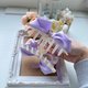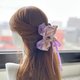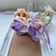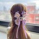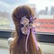 抓夾兩側為自行發想的扭結:夾子中心另有用細絲帶做的長尾蝴蝶結裝飾,其中心有閃亮的合金吊飾,整體立體澎湃,走在路上不會到處撞款。