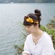 先一口氣帶至脖子(長髮者可先綁好馬尾再戴),再拉開髮帶如髮箍一樣箍到頭頂後,整理後腦勺髮流及前額頭髮即可