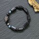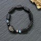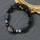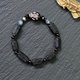 黑碧璽原石x拉長石x鑽石切面黑曜石x黑碧璽圓珠x椰殼x銀曜石龍龜純銀手鍊