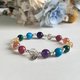 以磷灰石、孔雀石、紫水晶、黑金超七、薔薇輝石、太陽石、黃水晶,配上s925純銀而製成的一款水晶彩虹手鏈,顏色鮮豔特別,也適合送禮。