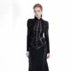 V形立領細節搭配皮袢使整體不單調裝飾性共存