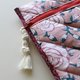 インドで作られたブロックプリント(木製のスタンプで色を重ねていく伝統的な手法)をオリジナルで厚みのあるキルティングに仕立てたタブレットスリーブ。