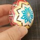Easter egg made of handmade wax technique: printing tools (pysachok-kistka) and wax on real chicken egg (egg in the middle of a blank), aniline dyes painted. All eggs are hand blown, washed and processed thermally. To make colors last longer pysanky are covered with several layers of UV protection.