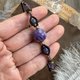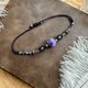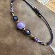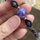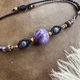 - 蠟線 , 銅珠, 紫龍晶珠 (約14 mm), 堇青石珠, 碧玉珠, 紫水晶珠