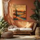 《沙海餘暉》適合陳設於客廳、書房、玄關或任何充滿自然光的空間。作品的色調能與多種家居風格共鳴——無論是現代簡約、異國風情或工業混搭,都能展現出不同的情緒層次。它不只是掛畫,更是一段靜止的風景,一種被凝結的時間感。