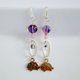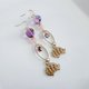 それぞれ可愛いはりねずみと小さめのチェコビーズが揺れるオーバルフープにコロンと可愛いローズグレープ色のチェコメロンビーズなどを合わせたお洒落な作品となっております☺