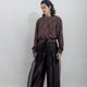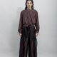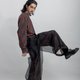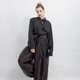 系列將原住民圖騰與現代設計元素巧妙融合:設計師解構並重塑經典千鳥紋,將烏鴉飛翔的姿態與羽翼融入幾何單元,捕捉展翅動態,創造全新印花語言。色彩上,橄欖綠象徵隱秘與深沉,熾焰紅致敬烏鴉創世的傳說之光,寂靜灰則呈現時間與記憶交錯的沉靜氛圍。印花隨模特步伐律動,如同烏鴉的翅膀在服裝上翱翔,展現動態的神秘美感。