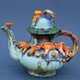 Large unusual ceramic teapot with multi-colored glaze. This Beautiful teapot with mushroom figurines was made by me.
