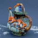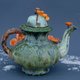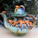 It is made of porcelain, hand molding decor. The picturesque glazes blurred beautifully, creating a unique pattern. But this fabulous teapot can be functional. You can brew tea or herbs in it.
