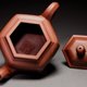 原礦帶有段泥顆粒淺青綠色雞眼似斑塊的紫泥礦,雞眼是成對的分佈甚密且平均。