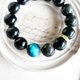ブルータイガーアイとレインボーオブシディアン(黒曜石)のブレスレットです。