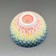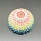 此作品是透過四到五層不同的釉藥層層堆疊,藉由每層施釉厚薄拿捏,並窯燒至1260度,歷經20小時的烈火淬煉,讓它在窯裡收縮流動,產生出孔雀羽毛的斑紋與流動感。