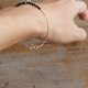 きらりと輝く約2mmのブラックストーンを合わせ、ミニマルな美しさと、大人のかっこよさを兼ね備えた腕輪に仕立てました。