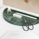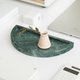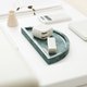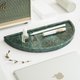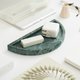 蛇紋石大半圓淺盤,選用台灣天然蛇紋石,由職人細緻切割與打磨製成。石材特有的翠綠色澤與自然紋理,使每一件作品都獨一無二。寬大的半圓造型不僅展現簡潔大方的設計感,也提供更充裕的收納空間,可放置文具、眼鏡、飾品、精油瓶或香氛蠟燭。厚實石材帶來沉穩的存在感與低調光澤,無論置於書桌、梳妝台或客廳,都能自然融入各種風格的空間,提升整體質感。兼具實用性與美感的設計,讓日常小物不再凌亂,而是以優雅的方式被呈現。