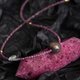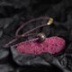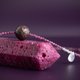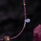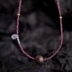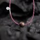 設計選用紅寶石切面珠作為珠鏈,玫粉色,成熟且可愛閃耀;紫金色大漆珠,純手工製作,髹漆三十餘道,表面光滑,深紫色的暈底,紋理顏色顯得層次分明,斑紋浮動,呈現出自然的變幻莫測之美,經常佩戴盤玩會變得更加厚重亮澤;一側鏈上搭配水滴形月光石,藍紫色光暈,柔美浪漫。