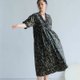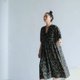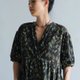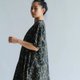 袖の長さは二の腕が隠れる長さ、また袖の付く位置が随分と下にありますので、腕回りがたっぷりとありますので、ゆったりとしていますが着用すると細身に見えるワンピースです。