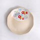 絵の描かれていないクリーム色の余白には、白土の土味を生かすために透明釉を掛けています。