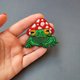 綠色青蛙胸針、萬聖節胸針、串珠蘑菇胸針、現代胸針、刺繡胸針、神奇女士胸針秋季配件
