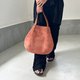 当店大人気の牛床ベロア丸型トートに、肩掛けができるMサイズが登場しました!